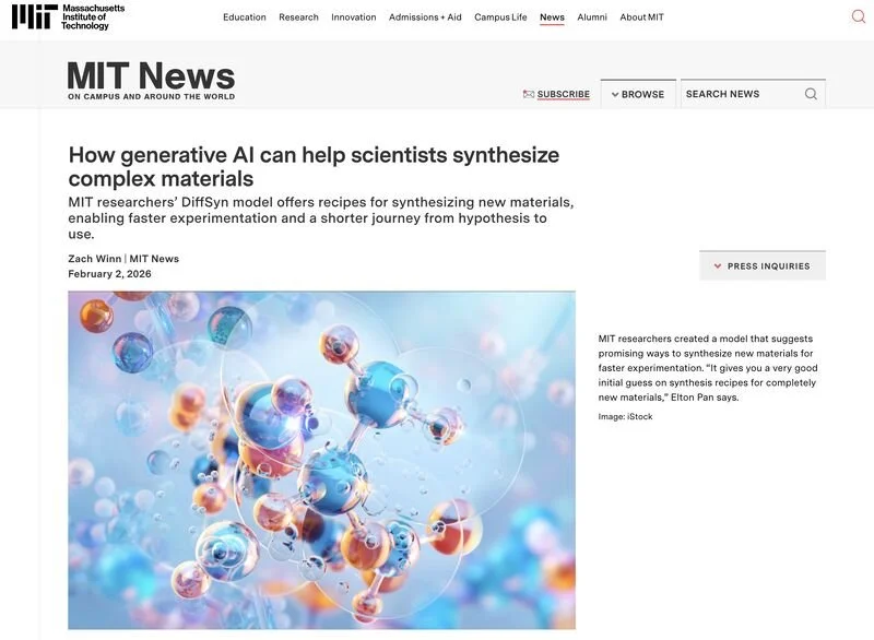 MIT News: https://news.mit.edu/2026/how-generative-ai-can-help-scientists-synthesize-complex-materials-0202